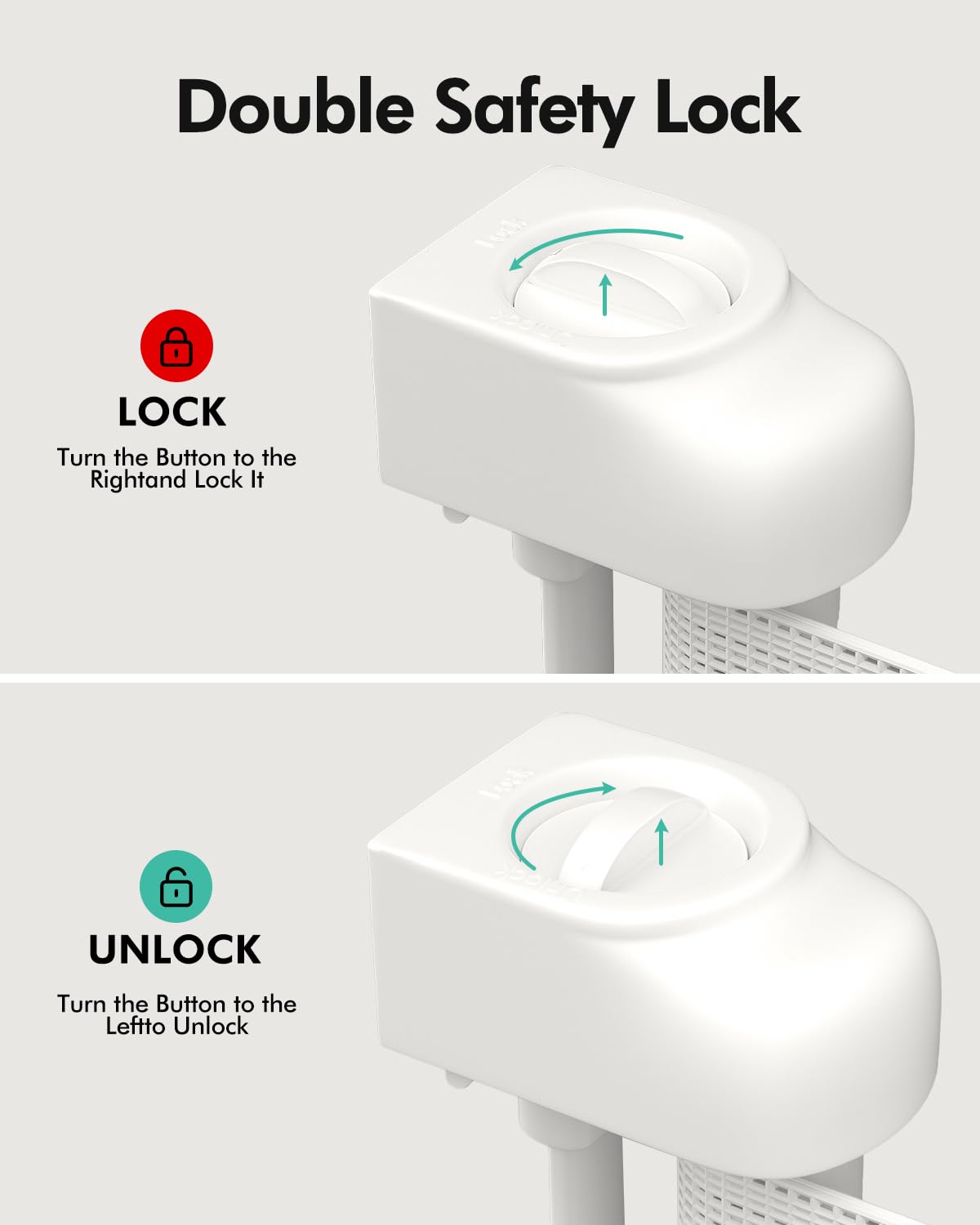 Works brilliantly as a baby gate for stairs and doorways, dog gate to restrict pet access, toddler barrier for play areas, or boundary for restricted rooms. Suitable for basements, kitchens, laundry rooms, patios, decks, and any area requiring temporary or permanent child/pet control.