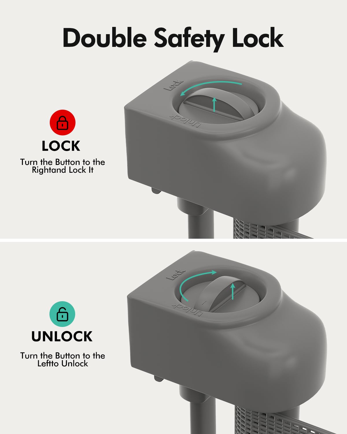 The 3-way locking mechanism ensures safety by preventing accidental opening from curious toddlers or persistent pets. Lock the gate in the extended position for continuous protection, retracted position for adult-only access, or anywhere in between for custom width adjustments.